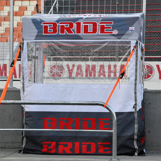 | 本格的プロフェッショナルレーシングチーム向けのピットサインエリアテントもございます。下側のパイロットケースが非常に高額で価格は60万円以上になります。 |