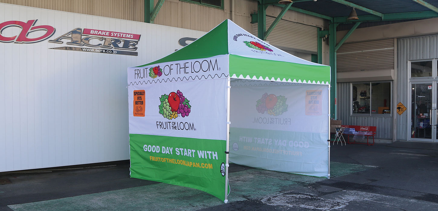 すべてのテントが真っ白な生地にフルスクリーンプリントを施して完成します。3m以上の大型プリンターからフルカラーでプリントをしますので、綺麗に天幕・横幕が完成します。クイックプロテントの六角形40mmアルミテントは軽量・高強度を実現し、カスタムプリントは無料サービスでブランドや製品を販売するための素晴らしい費用対効果の高いプラットフォームを提供します。
